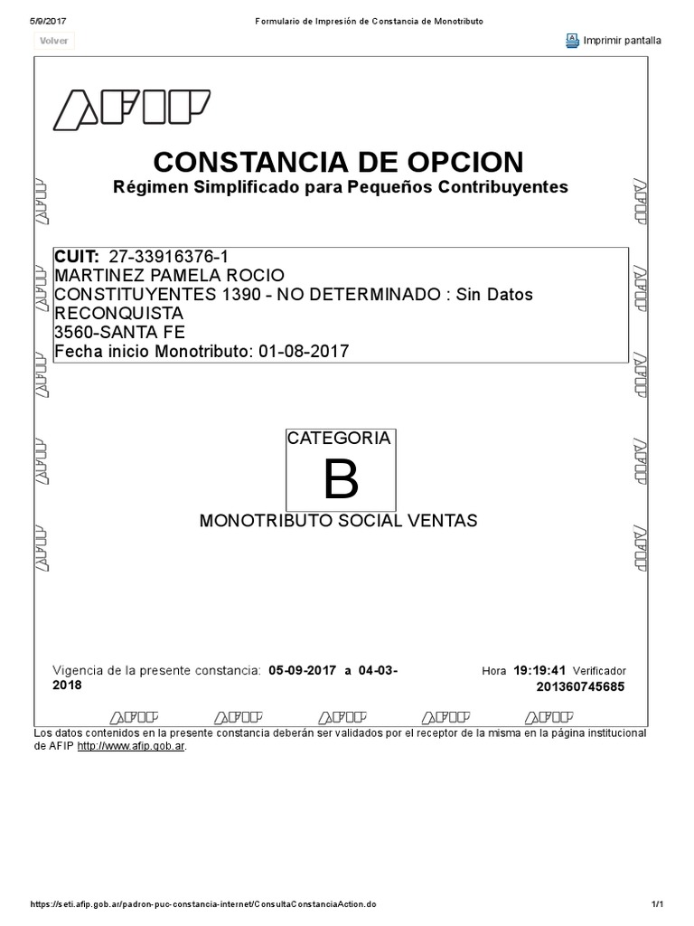 Si ya estás inscripto en el régimen de monotributo, podés obtener la constancia de inscripción si querés imprimirla, en la parte superior derecha de la constancia de inscripción tenés la opción. Es común llamarle a ambas constancia de inscripción afip, aunque como dijimos, no son lo mismo. La afip recordó que todos los monotributistas deberán tener un control de los parámetros de facturación promedio a partir de esa fecha, el organismo bloqueará la constancia del monotributo. Obtenga e imprima la constancia cuit ingresando su. Puede hacerlo de dos formas: